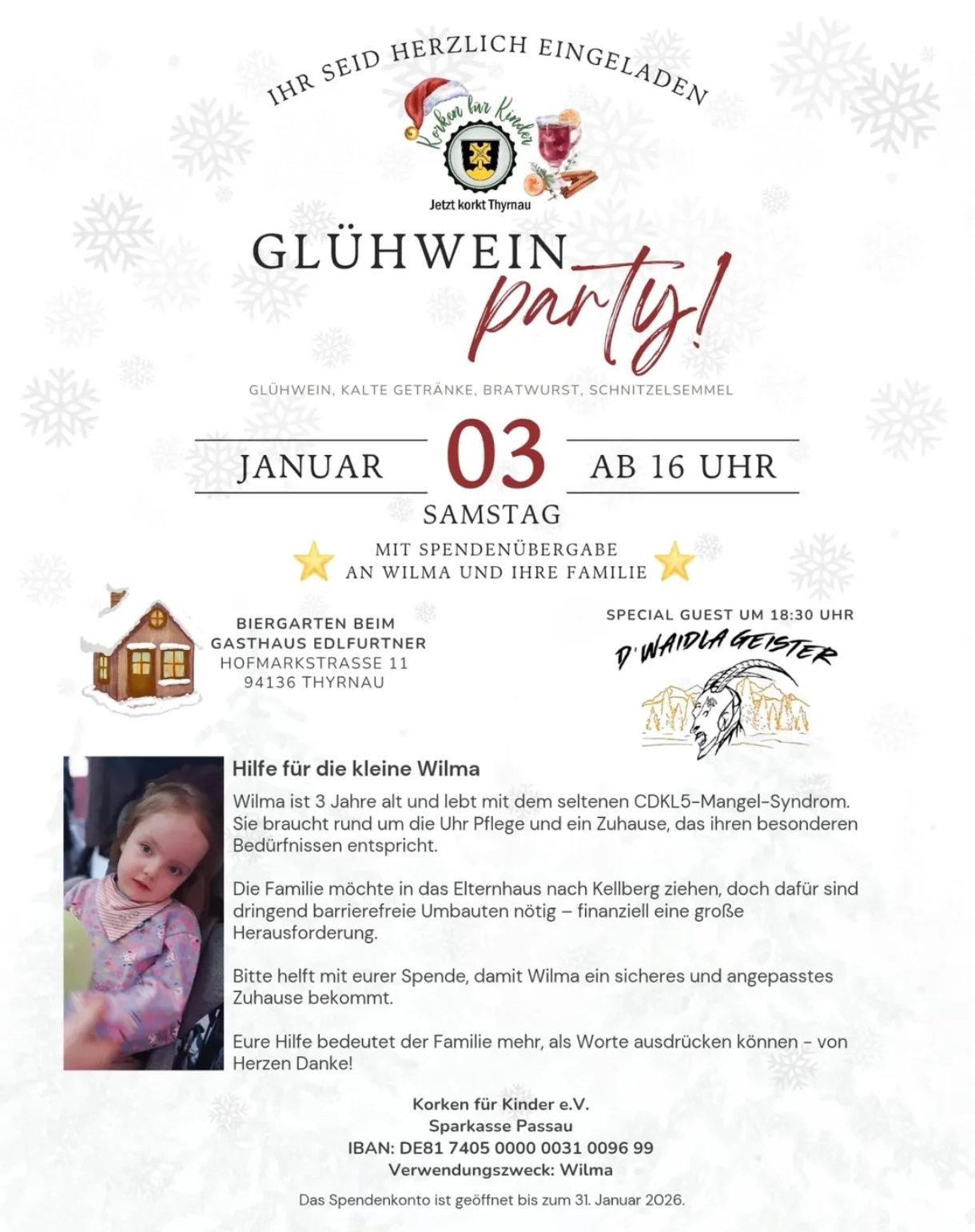 Glühweinparty Januar 3 @ 18:00 – 23:30 Biergarten Gasthof Edelfurtner Hoffmarkstraße 11, Thyrnau, Germany